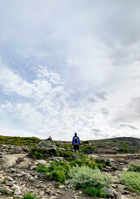 於登山口的路牌拍過了合照後,我們於 07:25 正式起步!起初一段路都相當平緩,遊走在高一個海拔 1000 米平原上,到處散佈著一些小湖與沼澤。平原上沒有明顯的小徑,我們基本上是踩在大片的岩石上,並且靠著插在地上的標桿來確認前進的方向 (當然還可以跟著「同路人」的大隊,不過有時外國人喜歡尋幽探秘,不可盡跟!)。