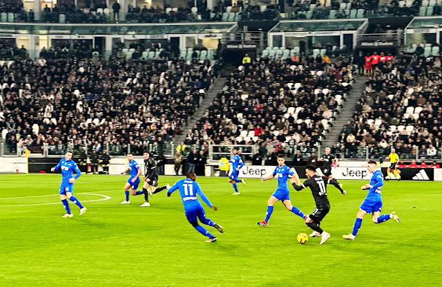 比賽於晚上六點鐘開波,16:45 左右,我們就看見了「西裝骨骨」的球員們經看台步入更衣室,當中 Perin、Locatelli、Yildiz、Cambiaso 幾個更踏入球場踩踩草。