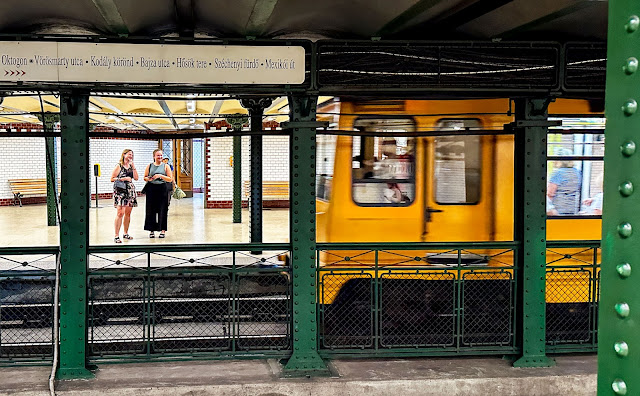 M1 線有點像 Berlin 的地鐵,落完樓梯就已經到達月台,而且同樣不設出入閘機,十分方便。於 2002 年被聯合國教科文組織列入為世界文化遺產名錄的 M1 線,站內保留了維多利亞時代的特色,部份採用了木材並以彩色馬賽克為裝飾,最有趣的是木造售票亭,據說現今還在使用中,可惜今日卻未有開門。